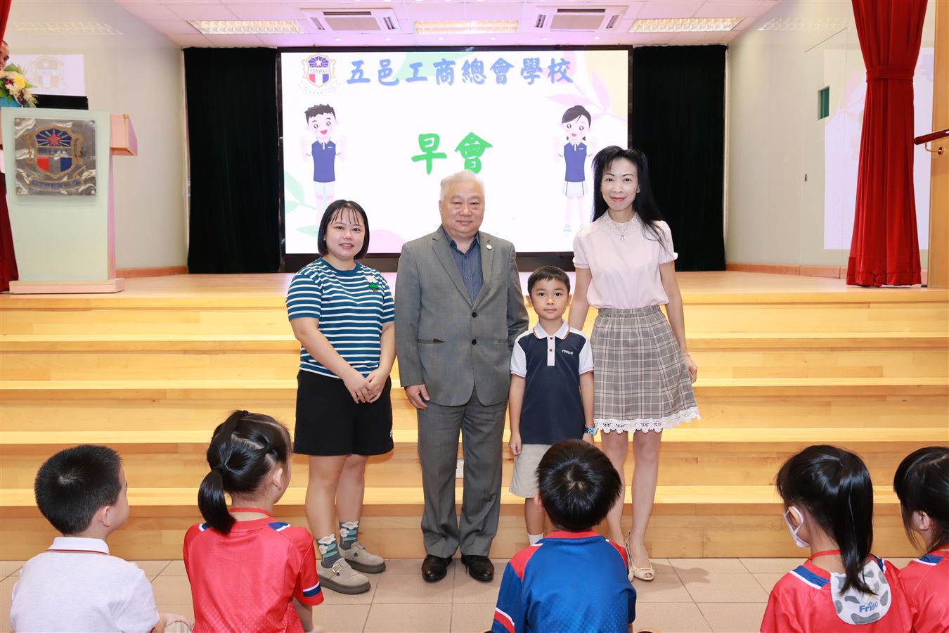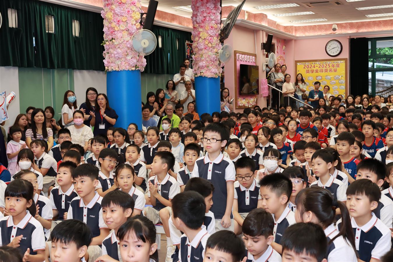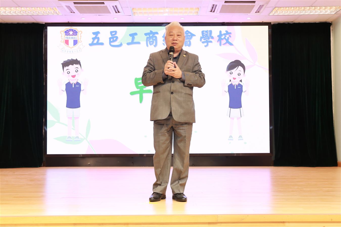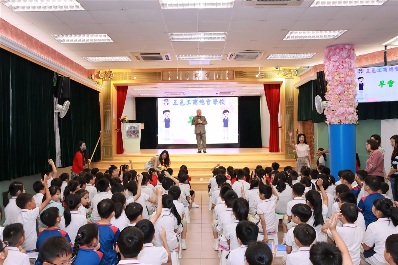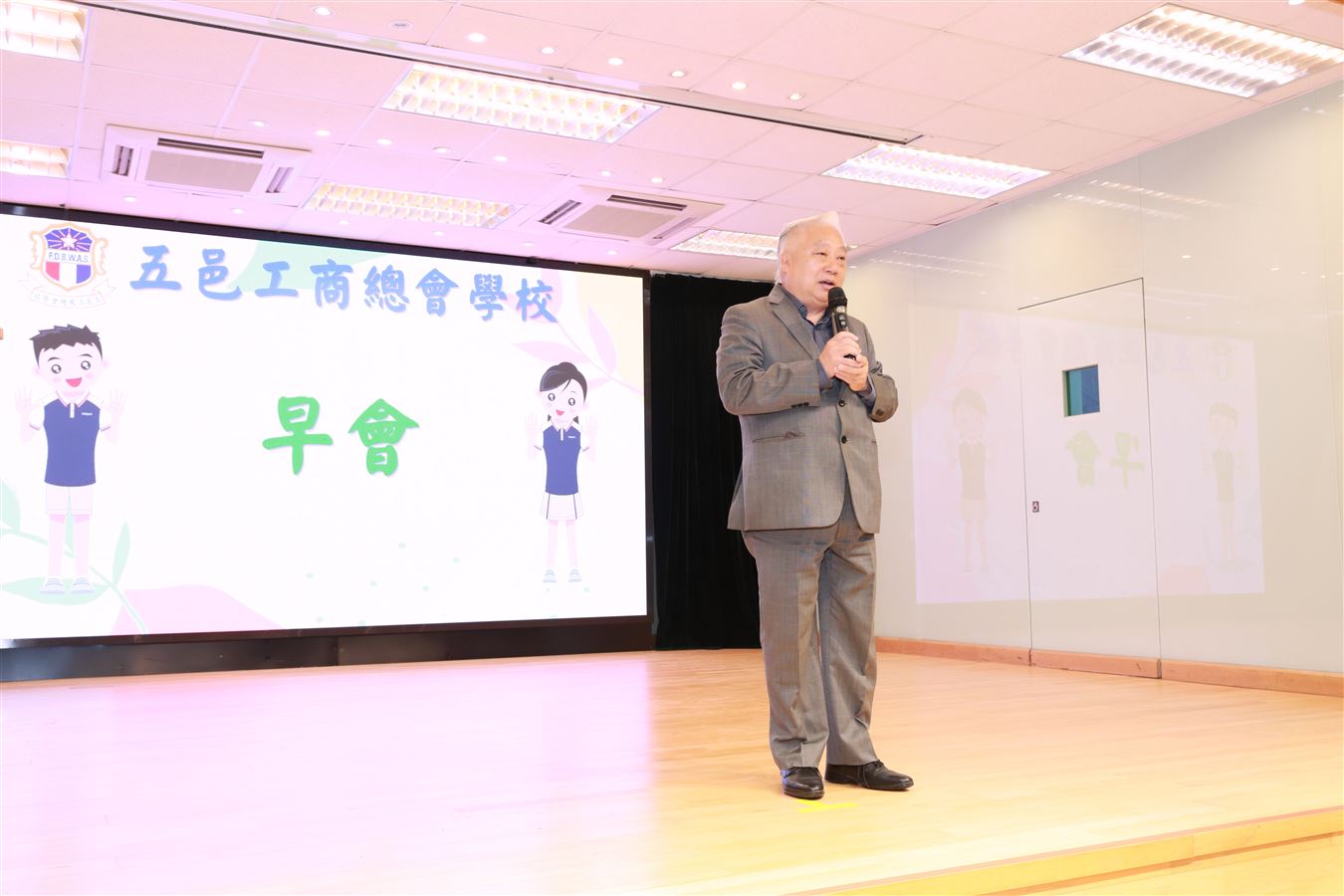 甄校監與同學們共同參加早會,分享心聲,激勵士氣。